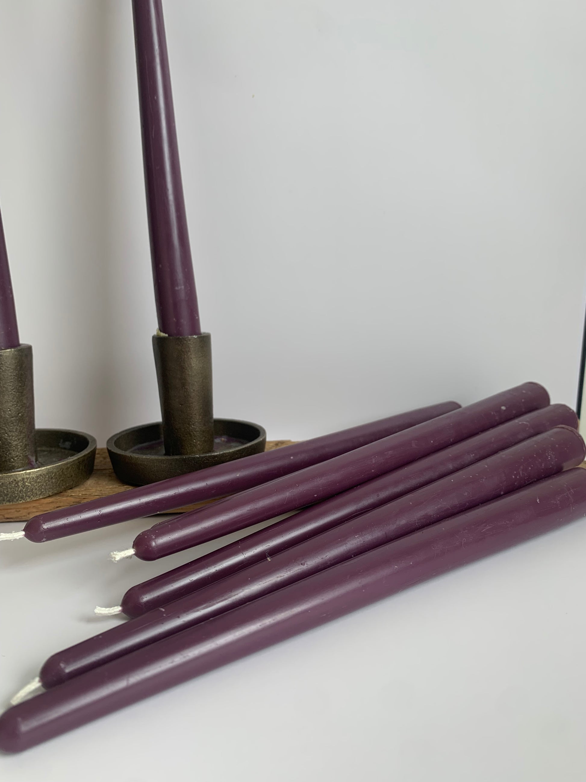 Set of two 100% Beeswax taper candles. Eco Dyed Purple for Lent.