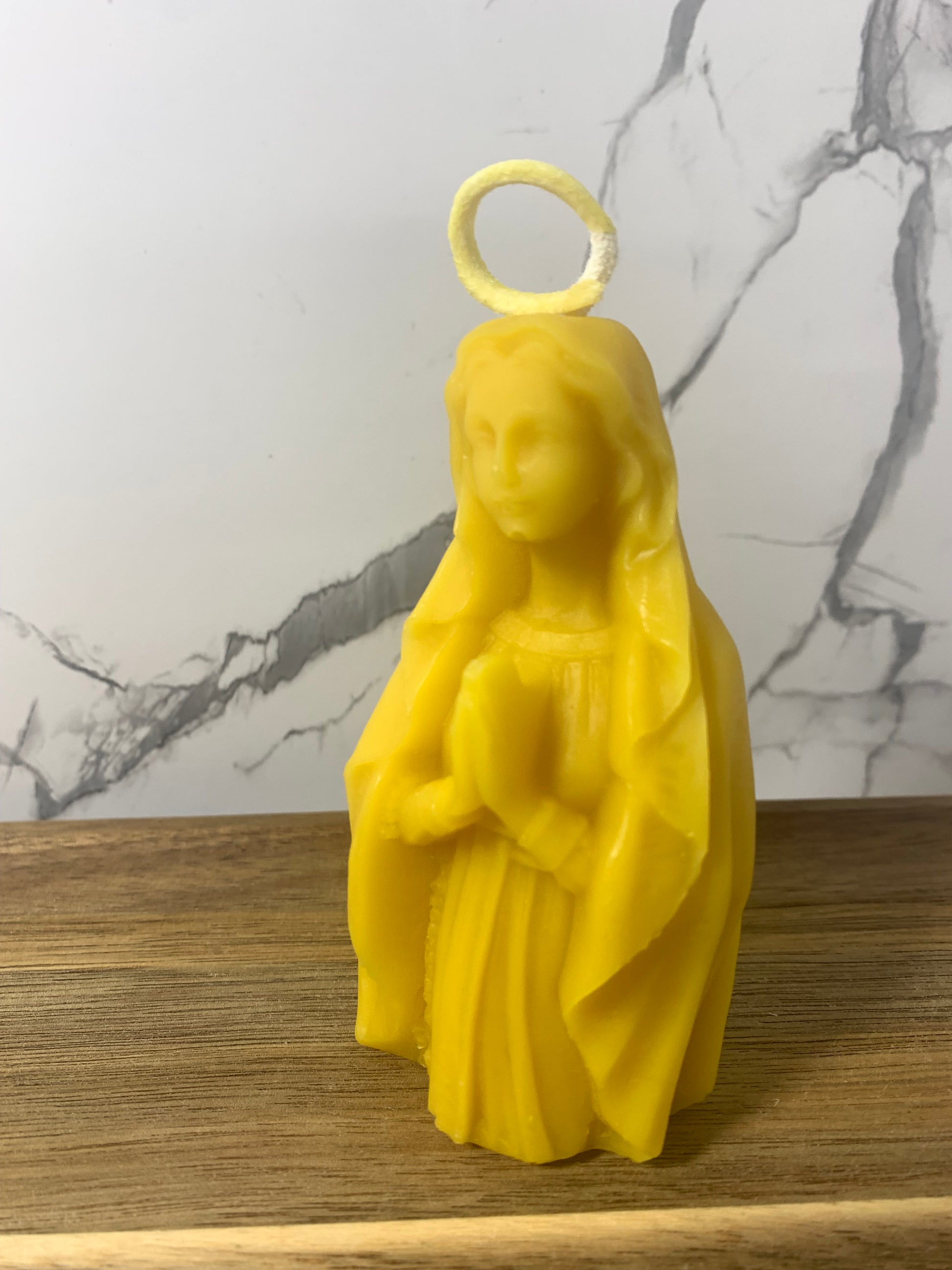 This beeswax candle of Our Lady of Grace is perfect for decorating your home with beautiful religious objects.
